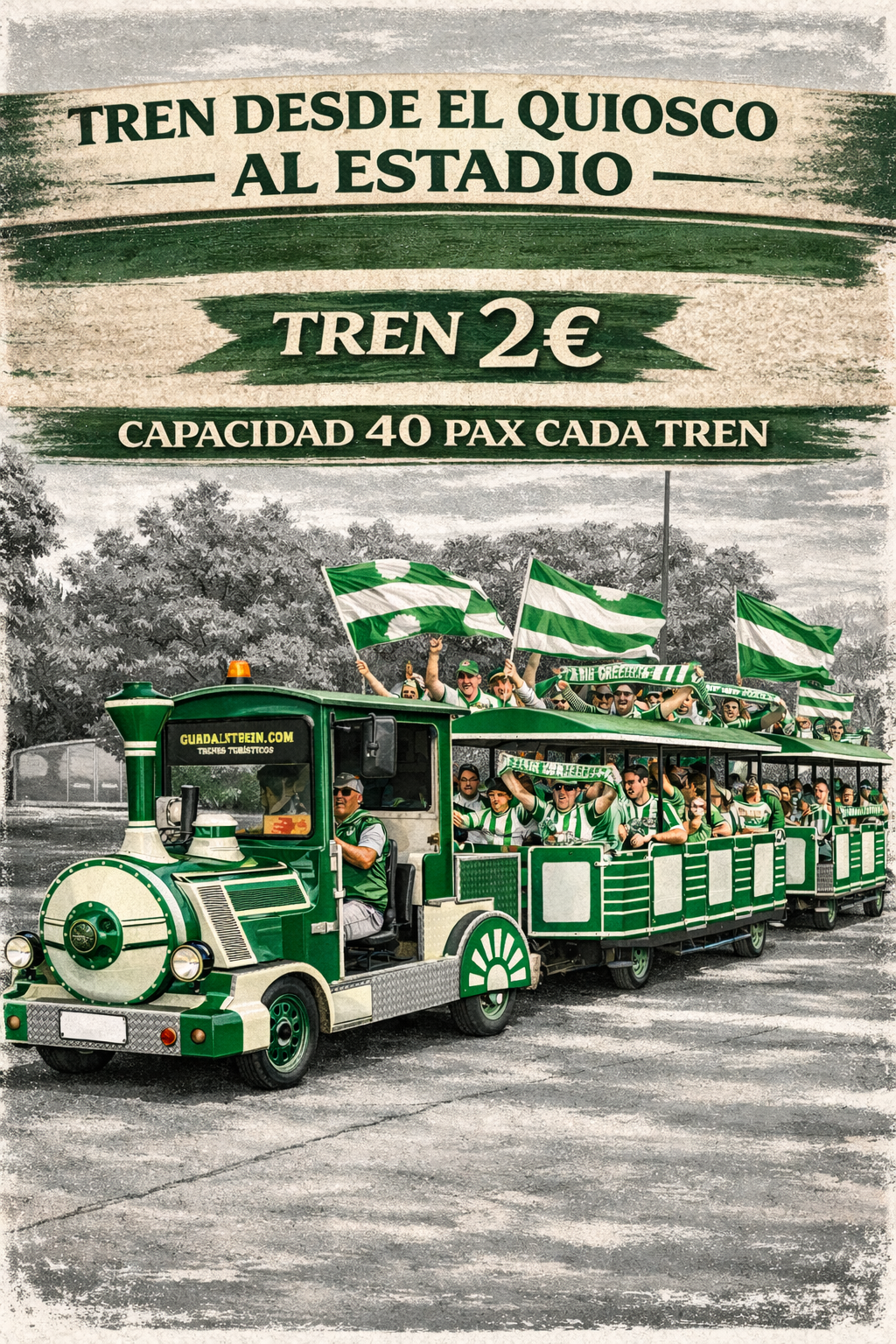 Traslado en tren desde el Quiosco El Naranjal al Estadio de La Cartuja.